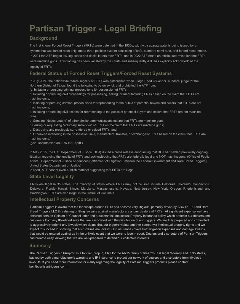 Grab yours today at Our Store: The Partisan Disruptor AR15 Forced Reset Trigger for only $299.99!