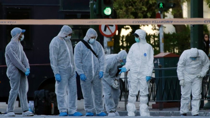Police said the attack was apparently carried out by two people on a motorbike, and a bike matching the description was later found in a central Athens neighborhood popular with anarchists and was being examined to determine whether it was the one that had been used in the attack.