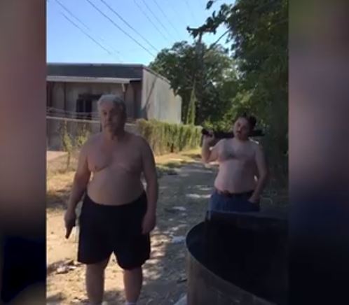 There simply is no way to justify this shoot. Its bad. Real bad. There was no attempt made to de escalate the situation at what so ever. In fact both parties stood there and continued making threats. despite some news sources saying the victim was unarmed both parties were at some point were. Again, making threats. You see the man in the orange shirt get close and right after the older man fires two shots from his pistol you see what appears to be a baseball bat being thrown at him. At which point his son fires a shot from his shotgun.
