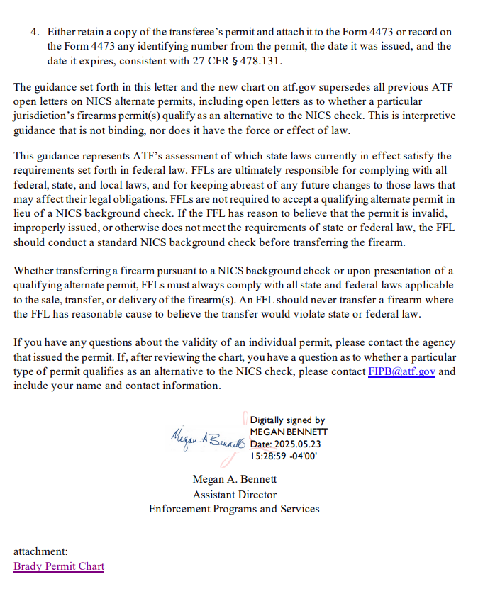 The ATF is saying that this new guidance—along with a new chart on their website—replaces all older letters about which state permits can be used instead of a NICS background check.