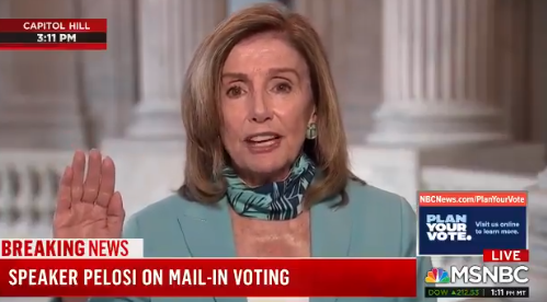“And again, support the postal system, which is Election Central,” Pelosi went on. “They’re doing everything they can [to] suppress the vote with their actions, scare people, intimidate by saying law enforcement will be there, diminish the role of the postal system in all of this. It’s really actually shameful. Enemies of the state.”