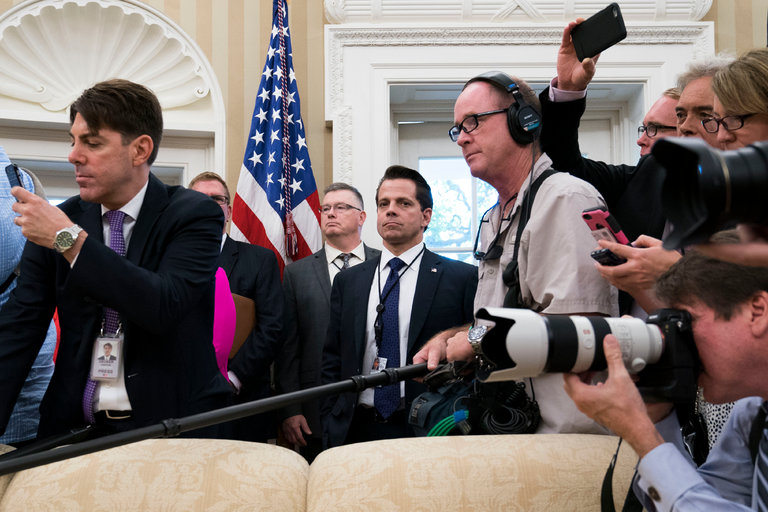 In a Twitter message just before 5:30 on Monday morning, just hours before the announcement about Mr. Scaramucci, Mr. Trump insisted that there has been “No WH chaos!”