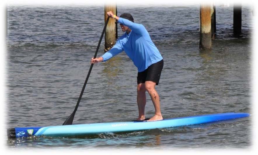 After his hospitalization, his wife Tonia purchased him a Stand-up Paddle Board for recreational therapy.