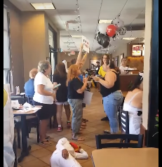 Videos from cell phones show, at first, customers laughing as protesters entered the Chick-fil-A on 34th Street.