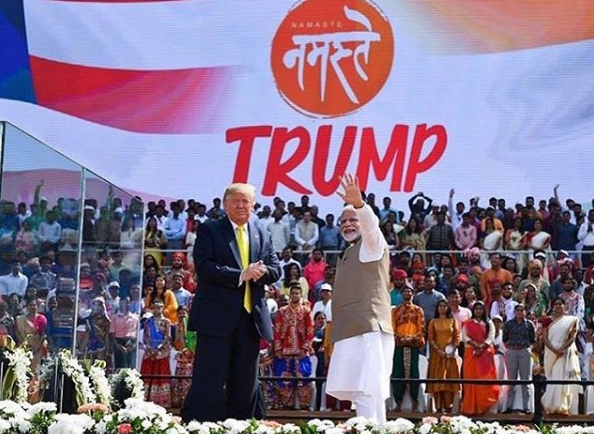 President Donald Trump met with Indian Prime Minister Narendra Modi at a rally in Ahmedabad on Monday, which drew crowds of over 100,000 people at the Sardar Patel Stadium, with the President calling for the strengthening of relations between the two countries. At the “Namaste Trump rally,” President Trump said “The first lady and I have just traveled 8,000 miles around the globe to deliver a message to every citizen across this nation: America loves India, America respects India, and America will always be faithful and loyal friends to the Indian people.”
